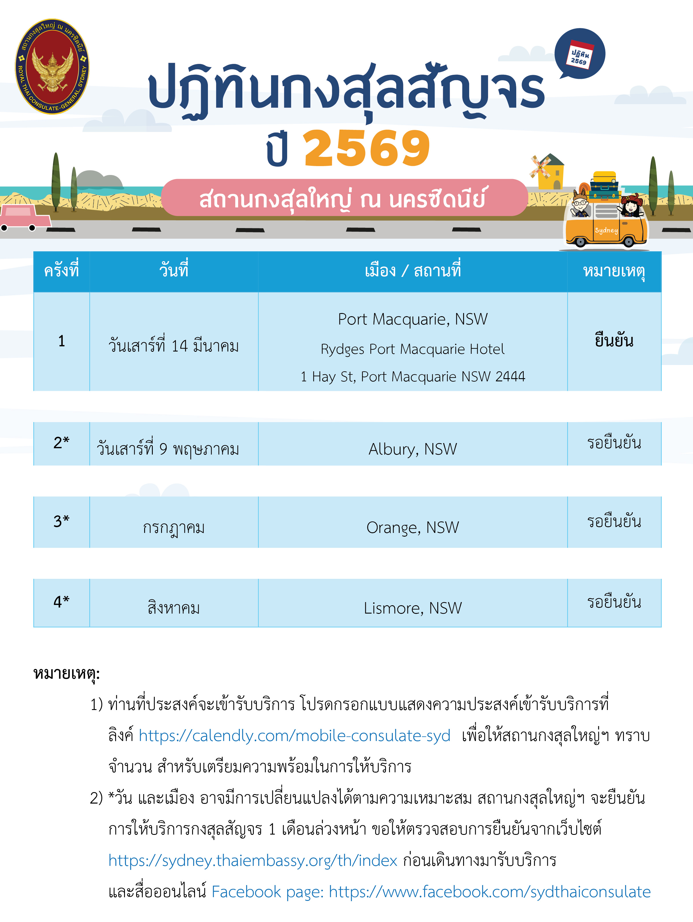 ประกาศปฏิทินกงสุลสัญจร ปี 2569