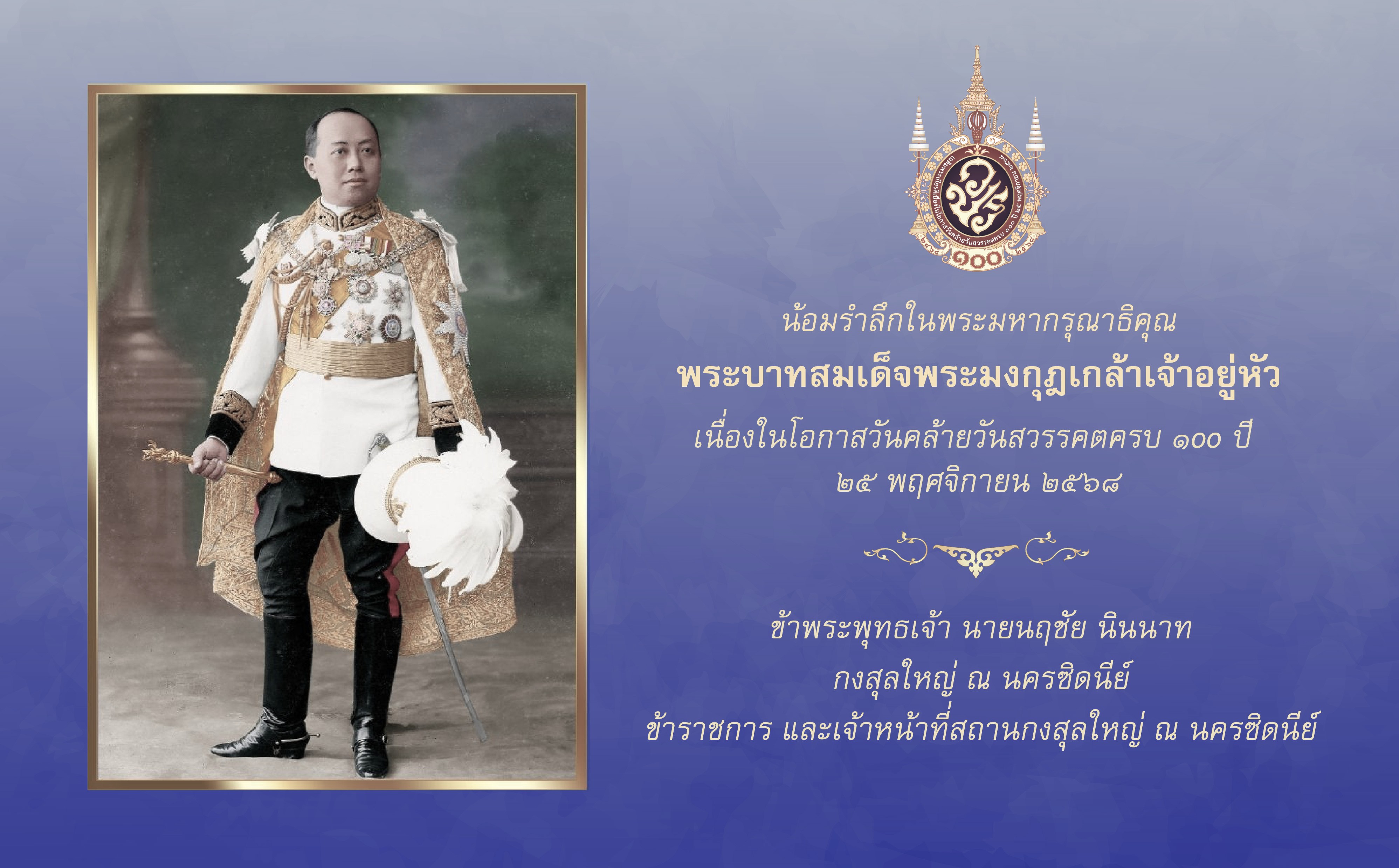 น้อมรำลึกในพระมหากรุณาธิคุณ พระบาทสมเด็จพระมงกุฎเกล้าเจ้าอยู่หัว เนื่องในโอกาสวันคล้ายวันสวรรคตครบ 100 ปี