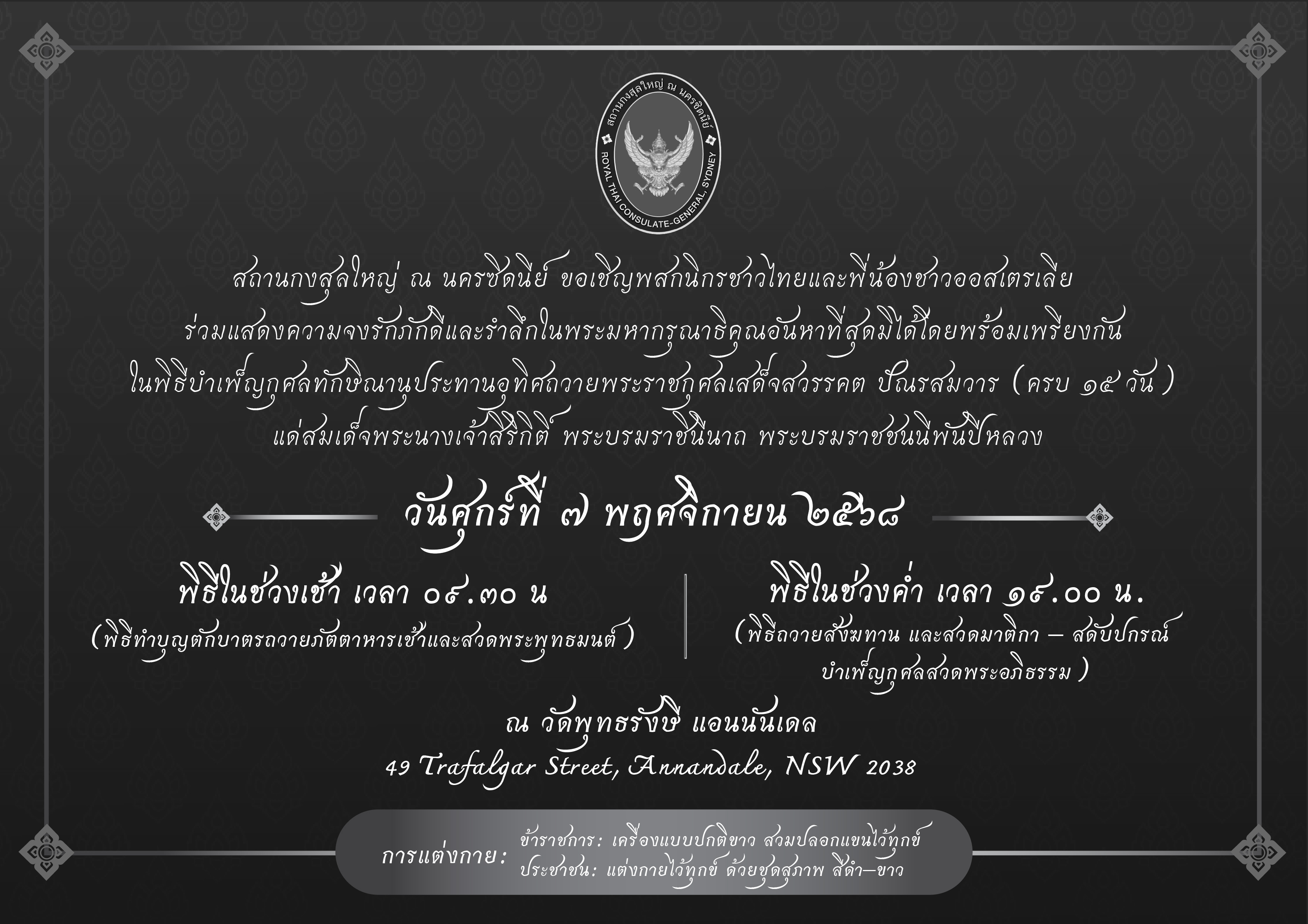 สถานกงสุลใหญ่ ณ นครซิดนีย์ ขอเชิญพสกนิกรชาวไทยและพี่น้องชาวออสเตรเลีย ร่วมแสดงความจงรักภักดีและ