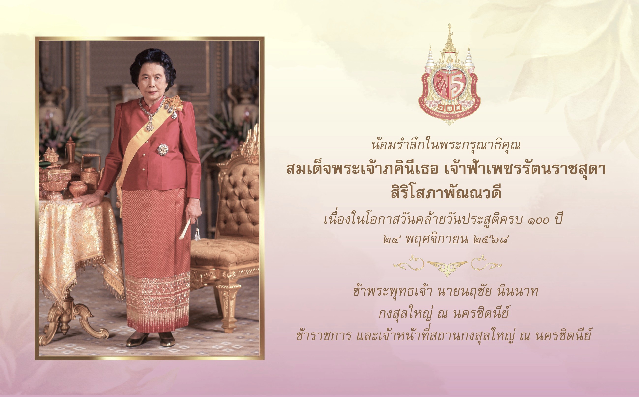 น้อมรำลึกในพระกรุณาธิคุณ สมเด็จพระเจ้าภคินีเธอ เจ้าฟ้าเพชรรัตนราชสุดา สิริโสภาพัณณวดี เนื่องในโอกาสวันคล้ายวันประสูติครบ 100 ปี