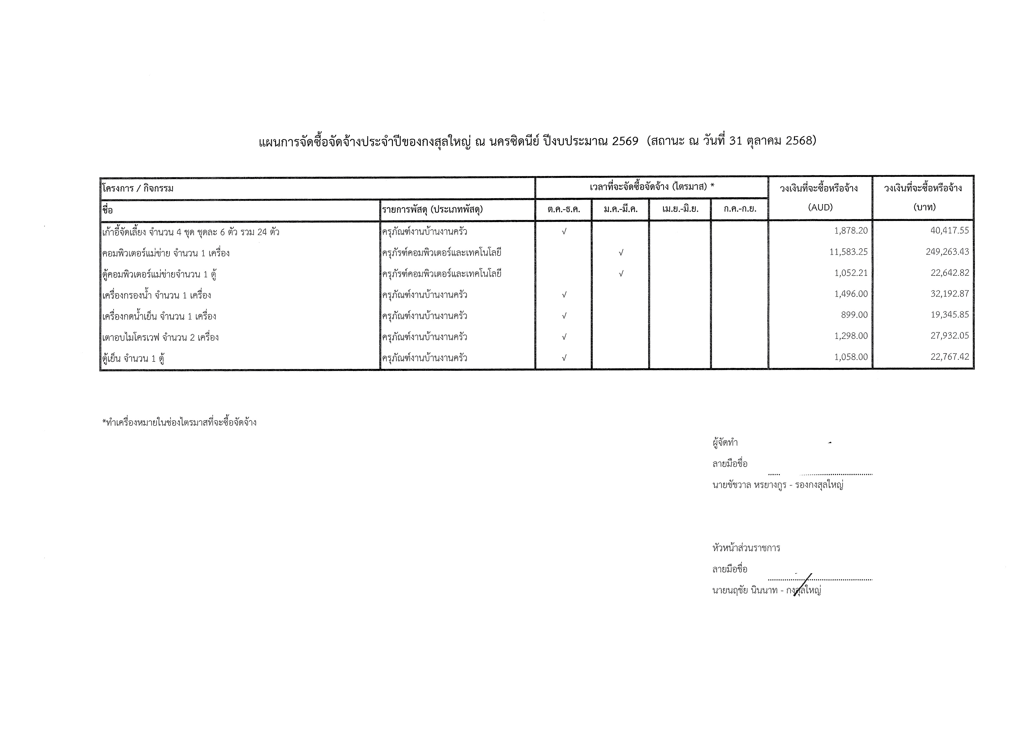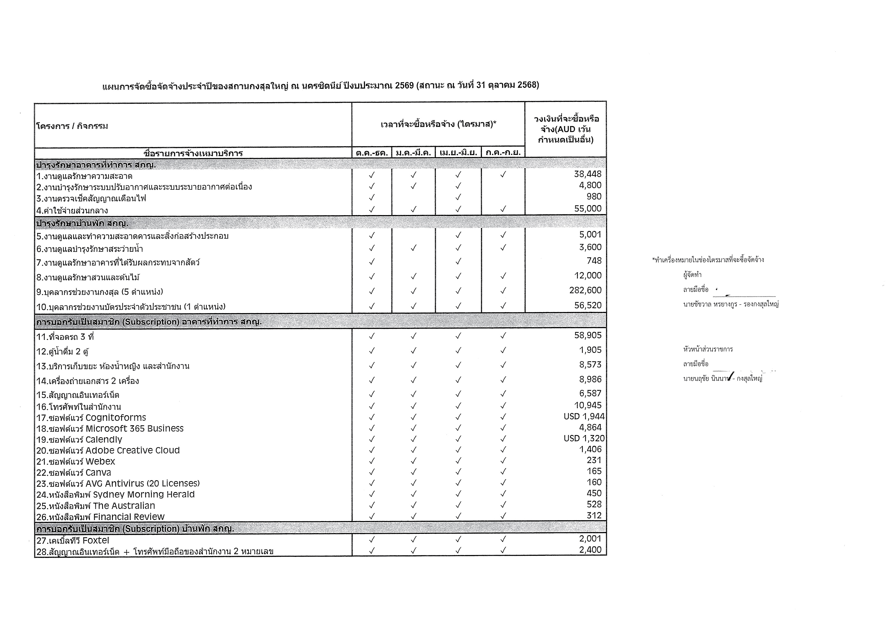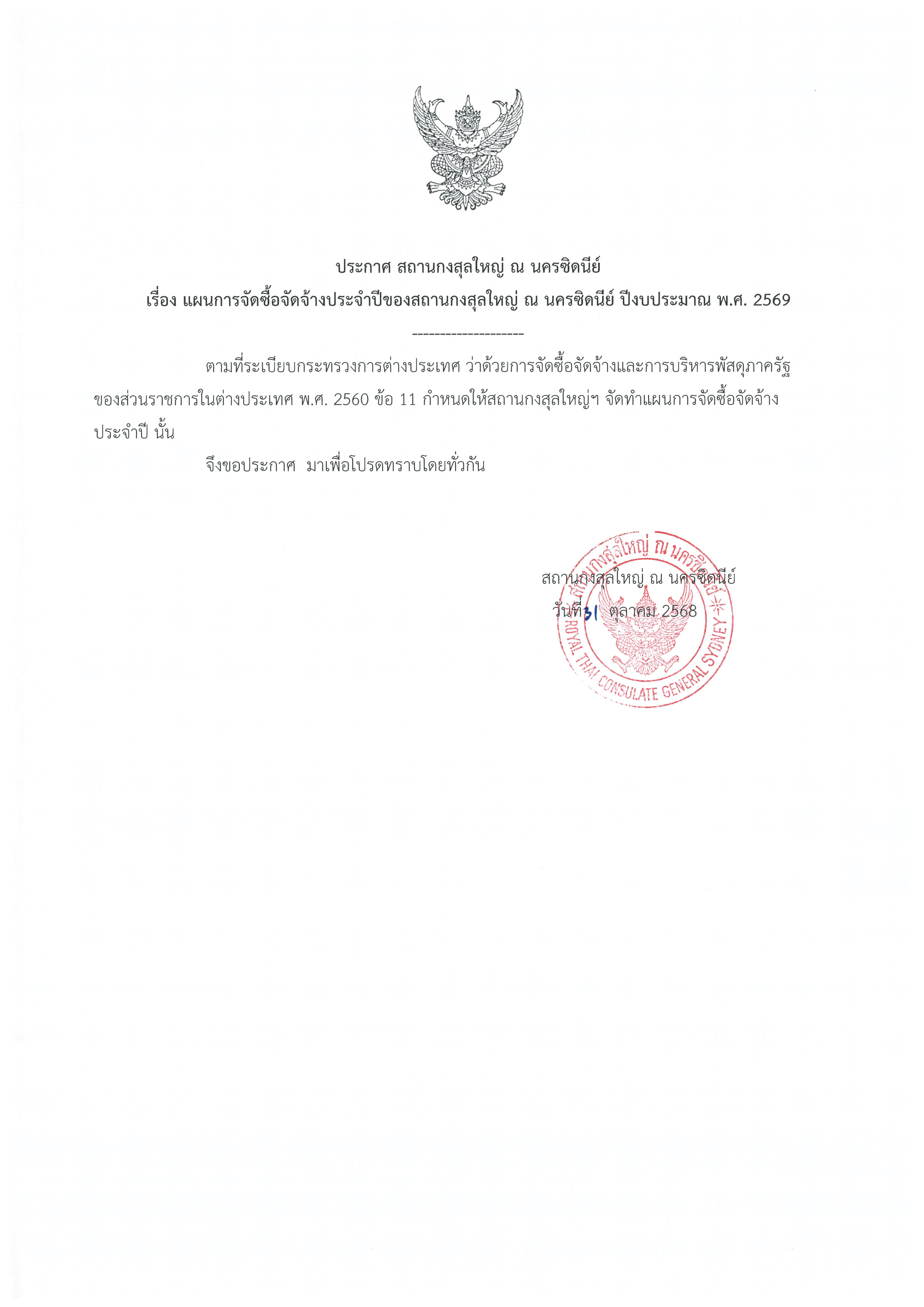 แผนการจัดซื้อจัดจ้างประจำปีของสถานกงสุลใหญ่ ณ นครซิดนีย์ ปีงบประมาณ พ.ศ. 2569